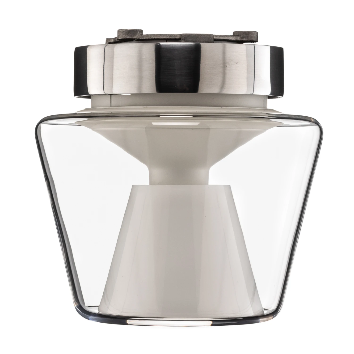 Die Designerleuchte Annex von serien.lighting kann sowohl mit einem eleganten Äußeren als auch mit einer ausgeklügelten Lichtwirkung aufwarten. Sehr elegant mit ein wenig Understatement kommt der konisch geformte, mundgeblasene Glaskörper daher. Dieser klare, äußere Schirm wird von einem inneren, ebenfalls konischen Schirm aus opalem Acryl ergänzt. Der opale Schirm ist wesentlich für die Lichtlenkung verantwortlich: Einerseits wird bei Annex Licht nach unten abgeben, durch den opalen Schirm wird ein Teil des Lichts aber auch seitlich gestreut, so dass eine sanfte Raumausleuchtung gegeben ist.