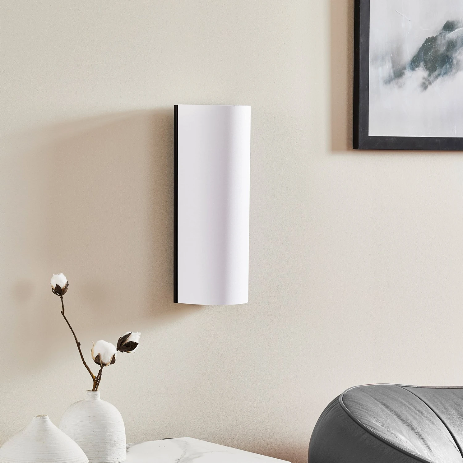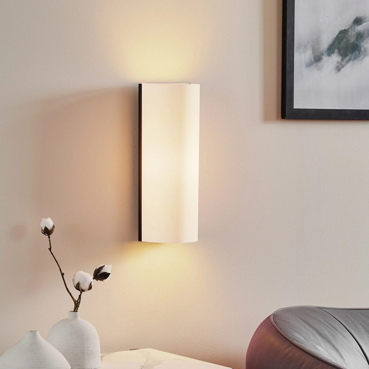 Club – eine Designer-Wandleuchte mit Chic und LED-Leuchtmittel Ein sanfter Lichtschein erfüllt weich und gleichmäßig die Umgebung der LED-Wandleuchte Club. Das mittig hinter dem halbrunden Schirm platzierte Leuchtmittel verbreitet sein Licht in Richtung der Schirmöffnungen nach oben wie nach unten, dazu scheint es aber auch durch den lichtdurchlässigen, weißen Chintz hindurch und erschafft so eine von Gemütlichkeit geprägte Atmosphäre. Mit Club ist jedoch nicht nur ein behagliches Lichtambiente garantiert, sondern die Leuchte gilt auch als besonders sicher, denn das Material des Schirms zeichnet sich durch schwere Entflammbarkeit aus. Club ist eine LED-Wandleuchte, die sich nicht festlegt. Weder auf eine vorherrschende Stilrichtung noch auf einen bestimmten Raum. Ihr Design ist genügsam und fügt sich in die Gestaltung ihres Bestimmungsortes problemlos ein. Club ist auch alles andere als aufdringlich. Sie hält sich mit ihrem Design dezent im Hintergrund und überlässt anderen Dekorationselementen den Vortritt. Nichtsdestotrotz überzeugt sie hinsichtlich Qualität und Funktionalität auf ganzer Linie. Das von der Schirmhälfte ausgehende, diffuse Licht sorgt für ein stilvolles Ambiente in langen Fluren, Gasträumen, Hotelzimmern oder einfach im heimischen Wohnzimmer.