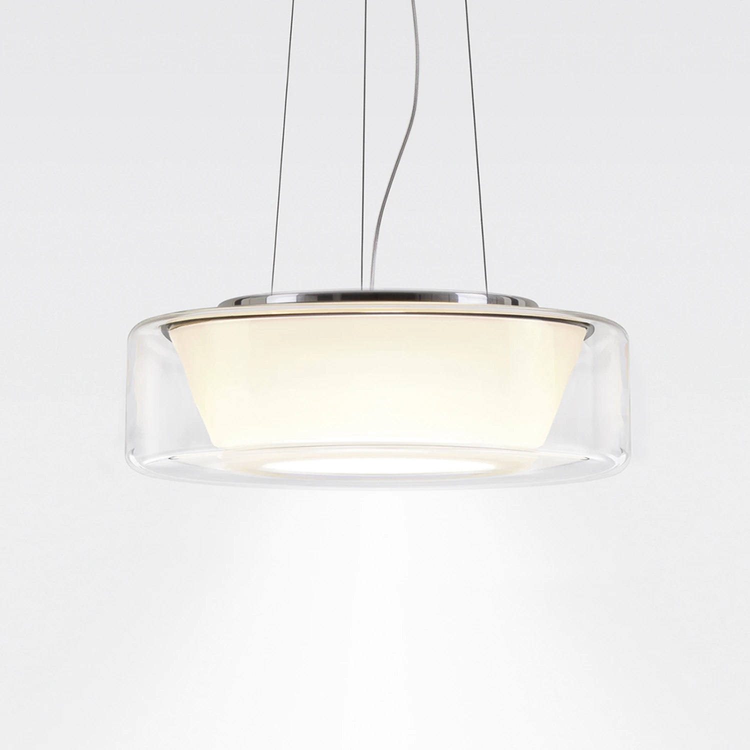 Die LED-Lichtquelle ist bei Defekt oder nach Ende der Lebensdauer dank eines patentierten Wechselsystems austauschbar und der Schirm lässt sich an der Stahlseilaufhängung werkzeuglos ausrichten. Ein Bajonettverschluss macht die Abnahme des Schirms, der in der Spülmaschine gereinigt werden kann, ebenfalls ohne Werkzeug möglich.