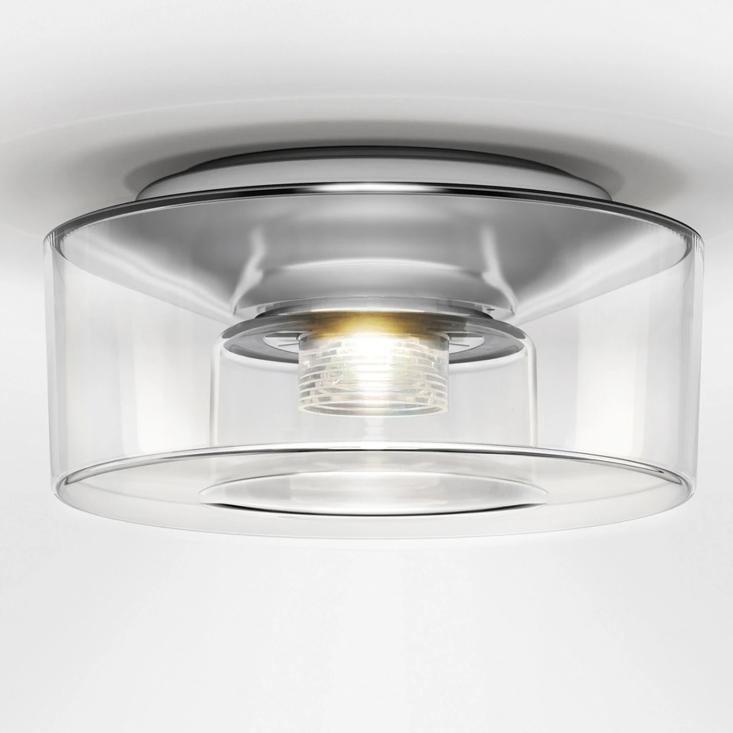 Klare, zeitlose Formen und intelligente Details machen die LED-Deckenleuchte Curling M zum universell einsetzbaren Lichtspender für die verschiedensten Räume im privaten, gewerblichen oder Objektbereich. Auf perfekte Weise vereinen sich moderne LED-Technik und eine elegante Zylinderform, sodass Curling M für eine energieeffiziente Beleuchtung in den verschiedensten Umgebungen steht. Der Aufbau besteht aus einem flach zylinderförmig gestalteten Schirm, der mittels Bajonettverschluss werkzeuglos auf dem Gehäuse aus poliertem Aluminium montiert wird. Vor der LED-Lichtquelle sitzt ein optischer Einsatz, der mit zwei Magnetpunkten befestigt wird. Dieser beeinflusst mit seinem speziellen Schliff die Lichtverteilung und sorgt für eine blendfreie, weiche Beleuchtung, die dank der hochwertigen LEDs die Farben in der Umgebung naturgetreu wiedergibt. Deren Intensität kann extern geregelt werden (TRIAC 0-10V).
