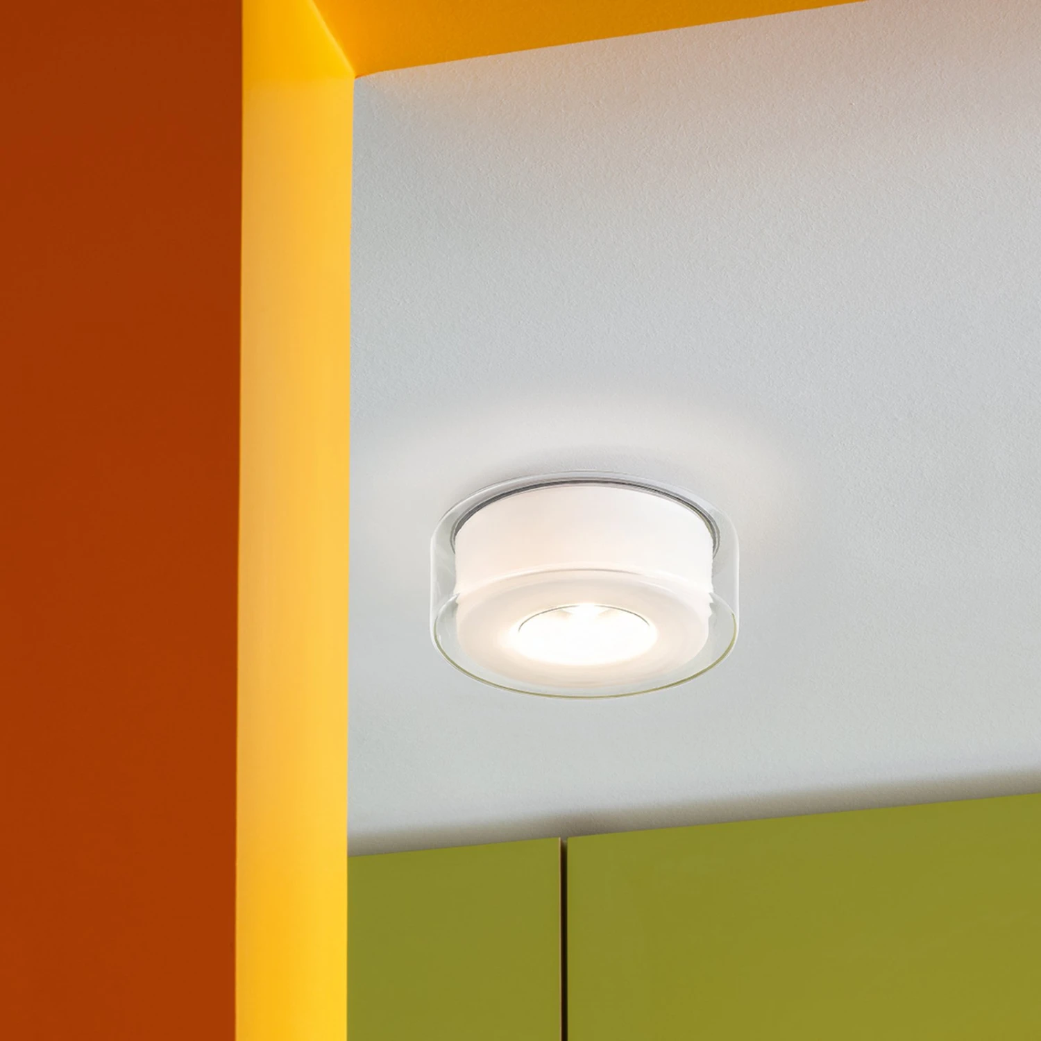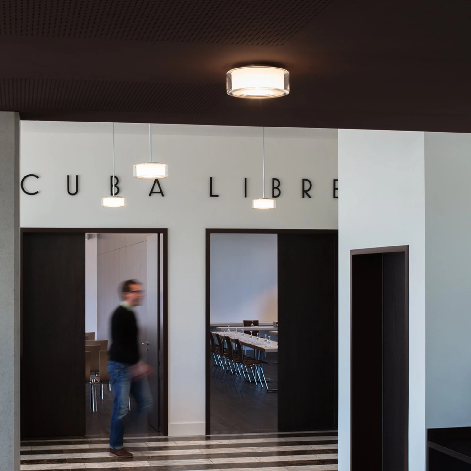 Ein runder, transparenter Schirm in Form eines Ringes umfasst einen opalen Diffusor, welcher ebenfalls in der Mitte eine Aussparung hat. Das Licht der fest verbauten, warmweißen LEDs tritt im Inneren des Rings aus und strahlt direkt nach unten und ebenso indirekt durch den matten Diffusor. Bei der Entwicklung der LED-Deckenlampe Curling haben die Designer Jean-Marc da Costa und Manfred Wolf, die beiden Gründer von serien.lighting, weder den praktischen noch den optischen Aspekt aus den Augen verloren. Entstanden ist so ein vielseitiger Allrounder, der sich praktisch überall einsetzen lässt. Gerne wird Curling im eigenen Wohn- und Schlafzimmer sowie auch in Geschäftsräumen oder im öffentlichen Bereich eingesetzt. Mit den überragenden energieeffizienten und langlebigen COB-LEDs, deren Dimmbarkeit über einen Phasenan- oder -abschnittdimmer möglich ist, sammelt Curling weitere Pluspunkte.