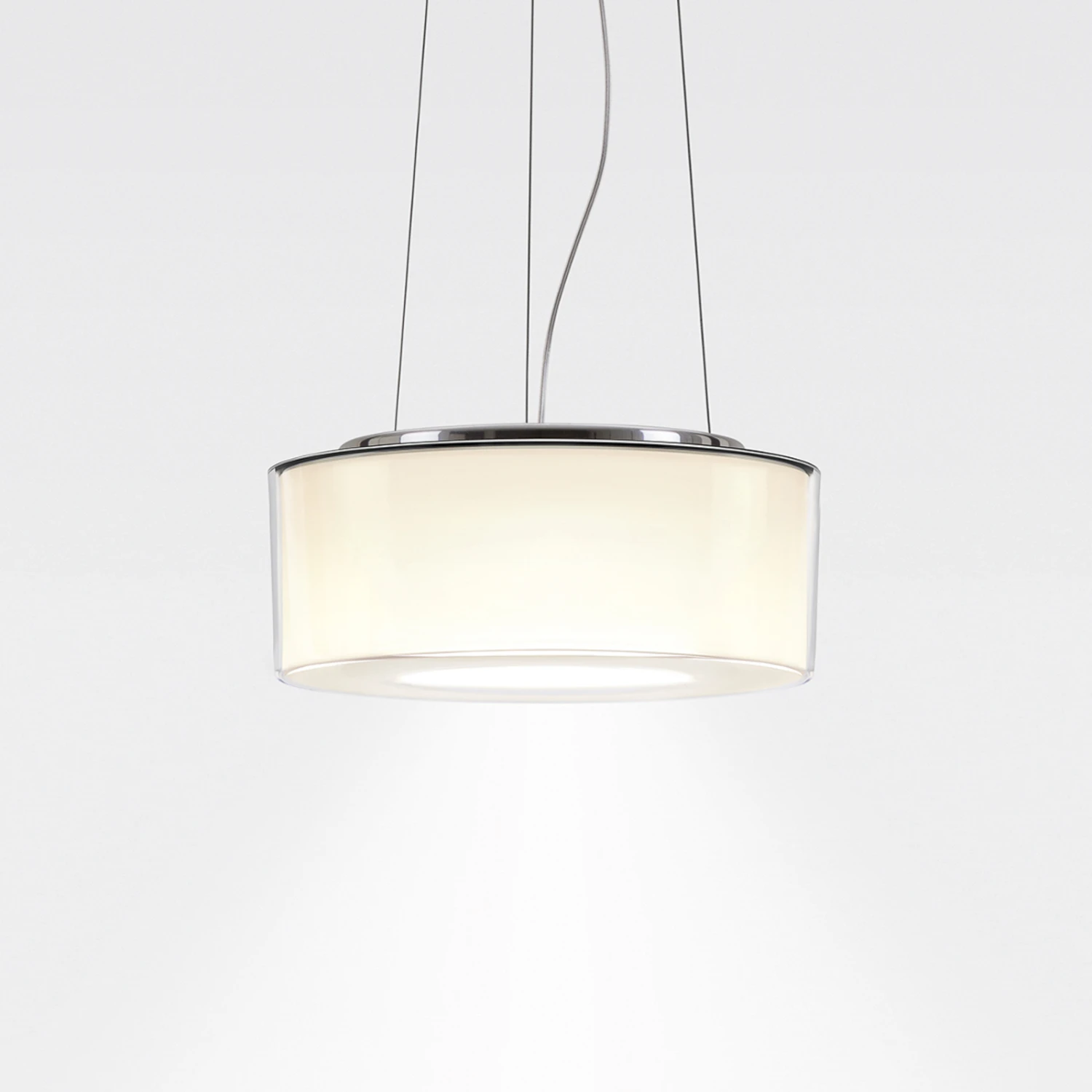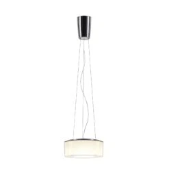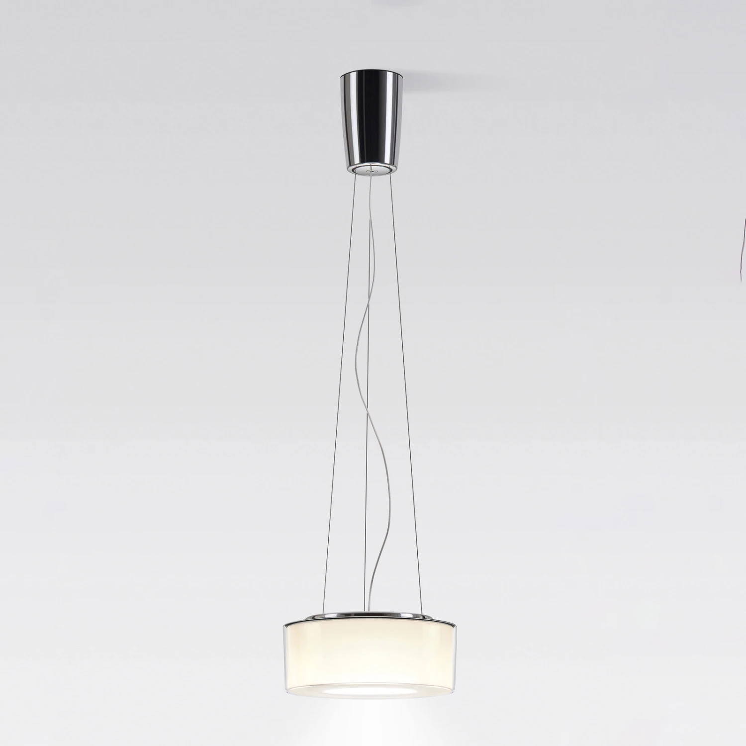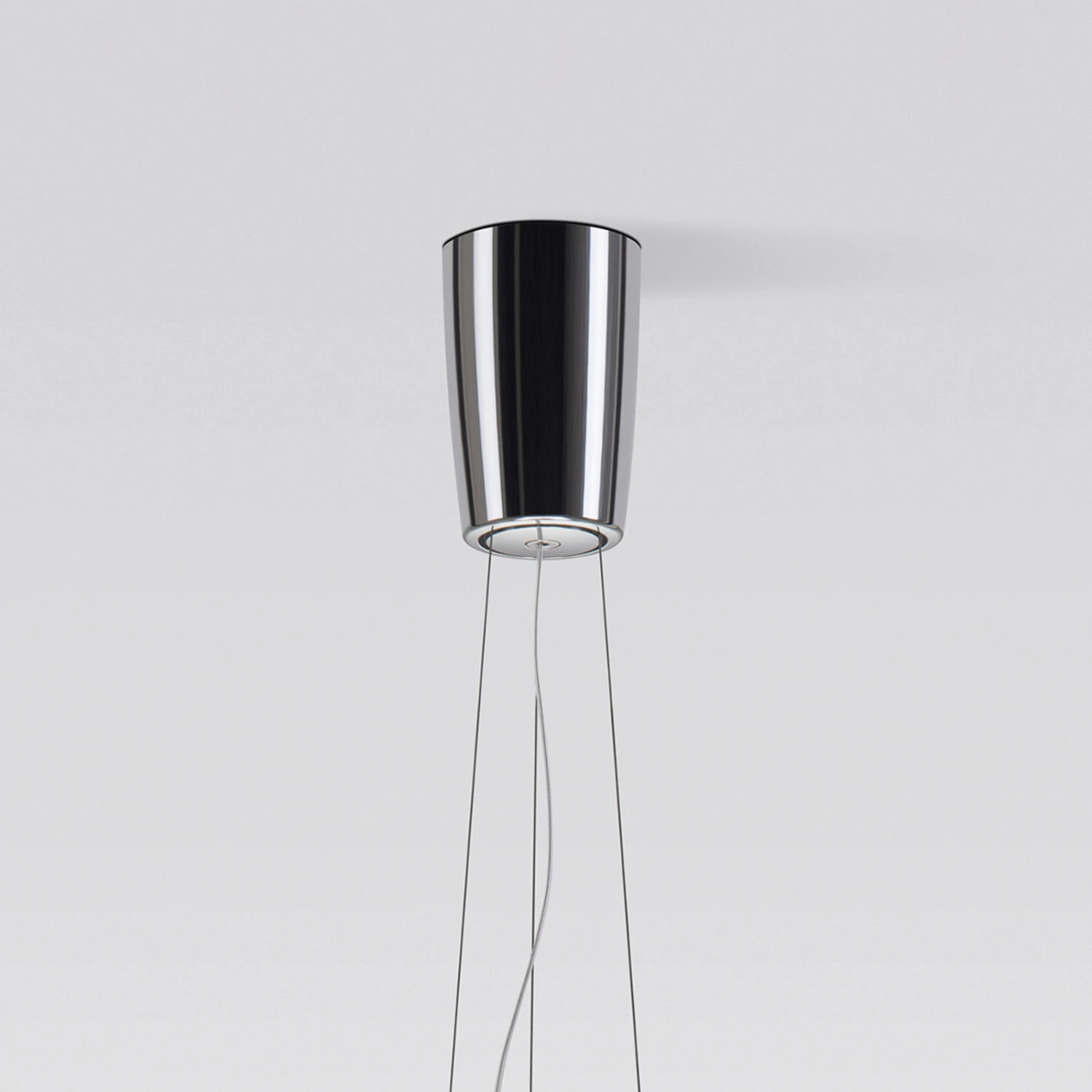 Bei der innovativen LED-Hängeleuchte Curling werden sowohl der Baldachin als auch die Leuchteinheit des Schirms aus poliertem Aluminium gefertigt. Die Verbindung zum ebenfalls aus poliertem Aluminium gearbeiteten Baldachin stellen drei Seile aus Edelstahl her. Innerhalb des Schirms aus klarem Acryl liegen ein Reflektor aus opalem Polycarbonat in Zylinderform sowie unterhalb ein weiterer Diffusor.