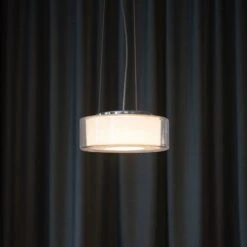 Für eine individuell gestaltbare Helligkeit ist die Pendelleuchte per Triac extern dimmbar. Die LEDs liegen innerhalb einer aus poliertem Aluminium bestehenden Leuchteinheit, die ihrerseits über drei Edelstahlseile am ebenfalls aus poliertem Aluminium gearbeiteten Baldachin an der Decke installiert wird.