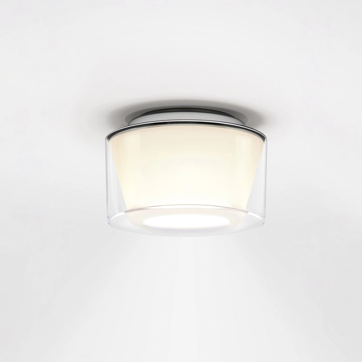 In der hier angebotenen Variante besteht der Schirm aus Acryl und der aus Polycarbonat gefertigte Innenreflektor weist eine konische, nach unten zulaufende Form auf. Im Zentrum ist Curling offen gehalten, so dass das warmweiße Licht ungehindert nach unten austritt. Mittels Magneten wird unterhalb des LED-Moduls ein zusätzlicher Diffusor angebracht.