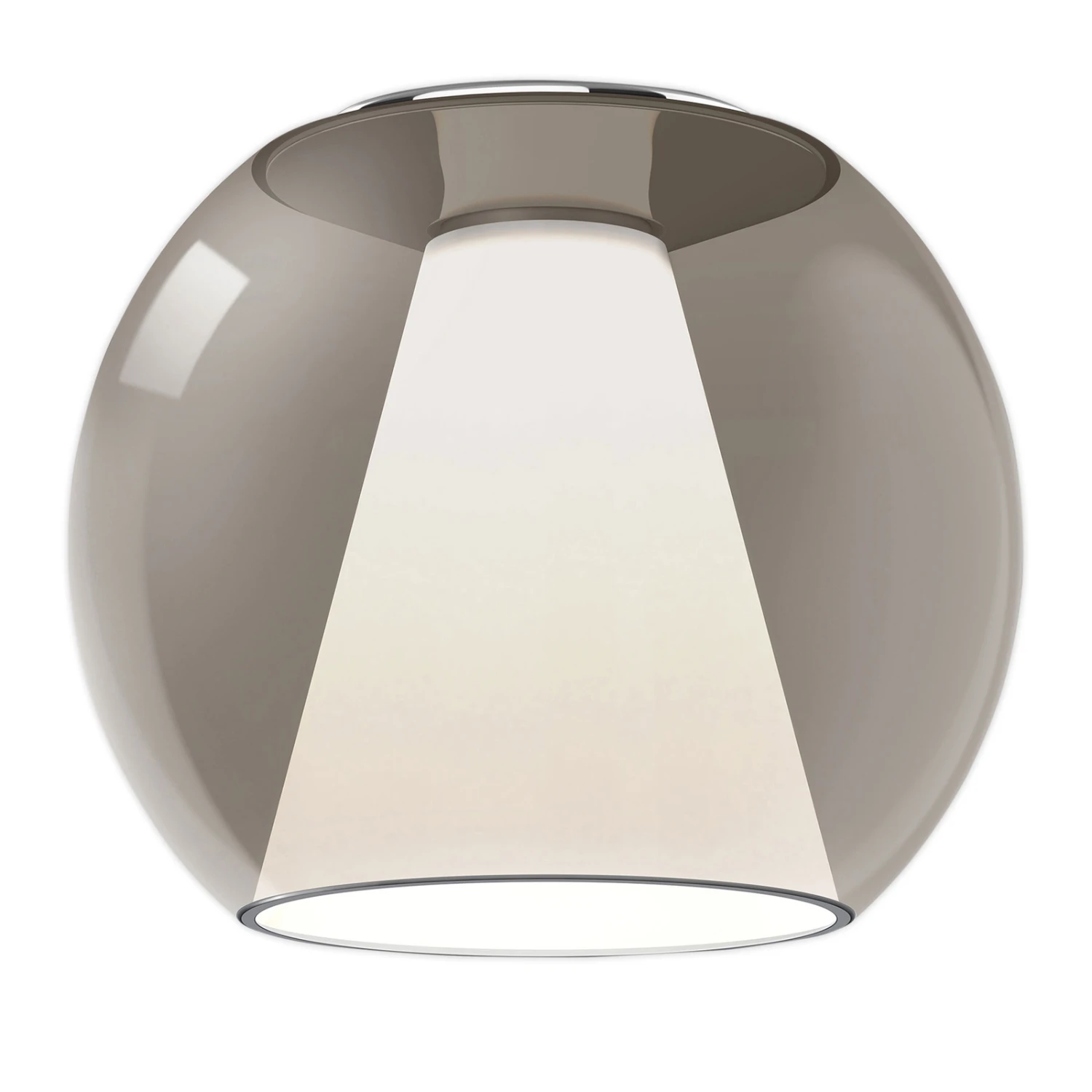 Mit der LED-Deckenleuchte Draft wird aus der archetypischen Kugelleuchte ein Objekt von zeitgenössischer Prägnanz und perfekt ausbalancierter Lichtwirkung. Die Kugel aus transparentem, mundgeblasenem Glas und der lichtstreuende, opale Innenreflektor treten in einen spannenden Kontrast. Die LED-Lichtquelle sitzt tief im Inneren des konischen Innenreflektors und sorgt rundum für weich gestreutes Raumlicht sowie ein gerichtetes Direktlicht nach unten. Eine Diffusorscheibe am unteren Abschluss gewährleistet einen besonders weichen Lichtaustritt und gleichmäßig beleuchtete Flächen.