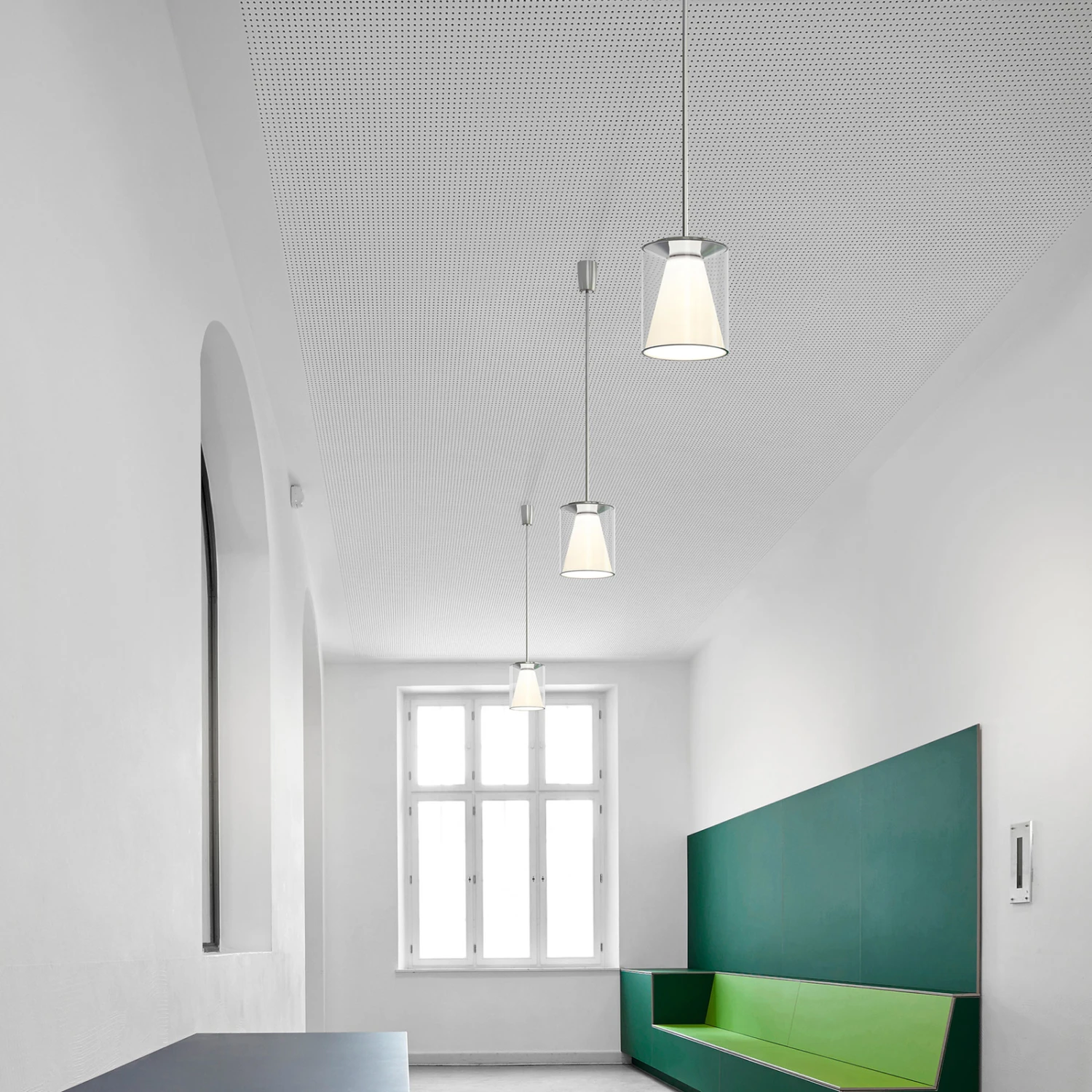 Die LED-Hängeleuchte Drum M mit ihrem doppellagig aufgebauten Leuchtenschirm und einer Befestigung an einem verchromten Stahlrohr eignet sich hervorragend zur Beleuchtung von Tischen und Theken in Aufenthalts- und Emfpangsräumen. Der zylindrische Außenschirm aus klarem, mundgeblasenem Glas wird durch einen innen sitzenden, konischen Reflektor aus opalweißem Polycarbonat ergänzt, der für die ganz besondere Lichtwirkung der Leuchte verantwortlich ist. Gleichmäßiges, nach unten gerichtetes Direktlicht und rundum mild abstrahlendes Licht werden wirkungsvoll vereint, womit Drum M zu einer angenehmen Lichtquelle für die verschiedensten Bereiche wird – ob in privaten Wohnräumen oder in gewerblichen Objekten. Energieeffizient dank modernster LED-Technik, mit austauschbarem Modul, nutzerfreundlich dank des werkzeuglos zur Reinigung abnehmbaren Schirms und anpassungsfähig dank der TRIAC-Dimmbarkeit Drum M präsentiert sich als durchdachter, zeitgemäßer Lichtspender.