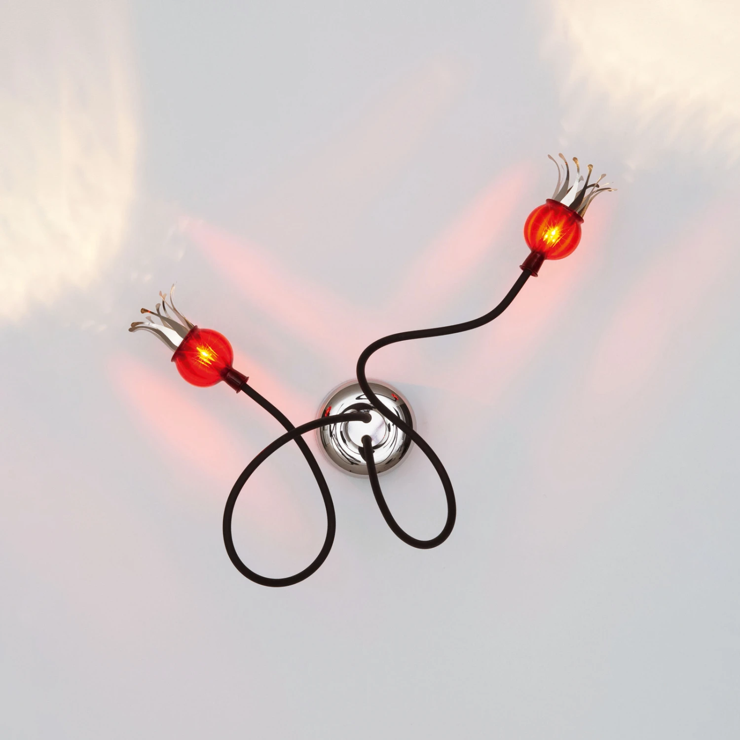 Zweiflammige Deckenleuchte Poppy mit flexibel ausrichtbaren Armen und effektvollen Glasschirmen in Mohnblütenform