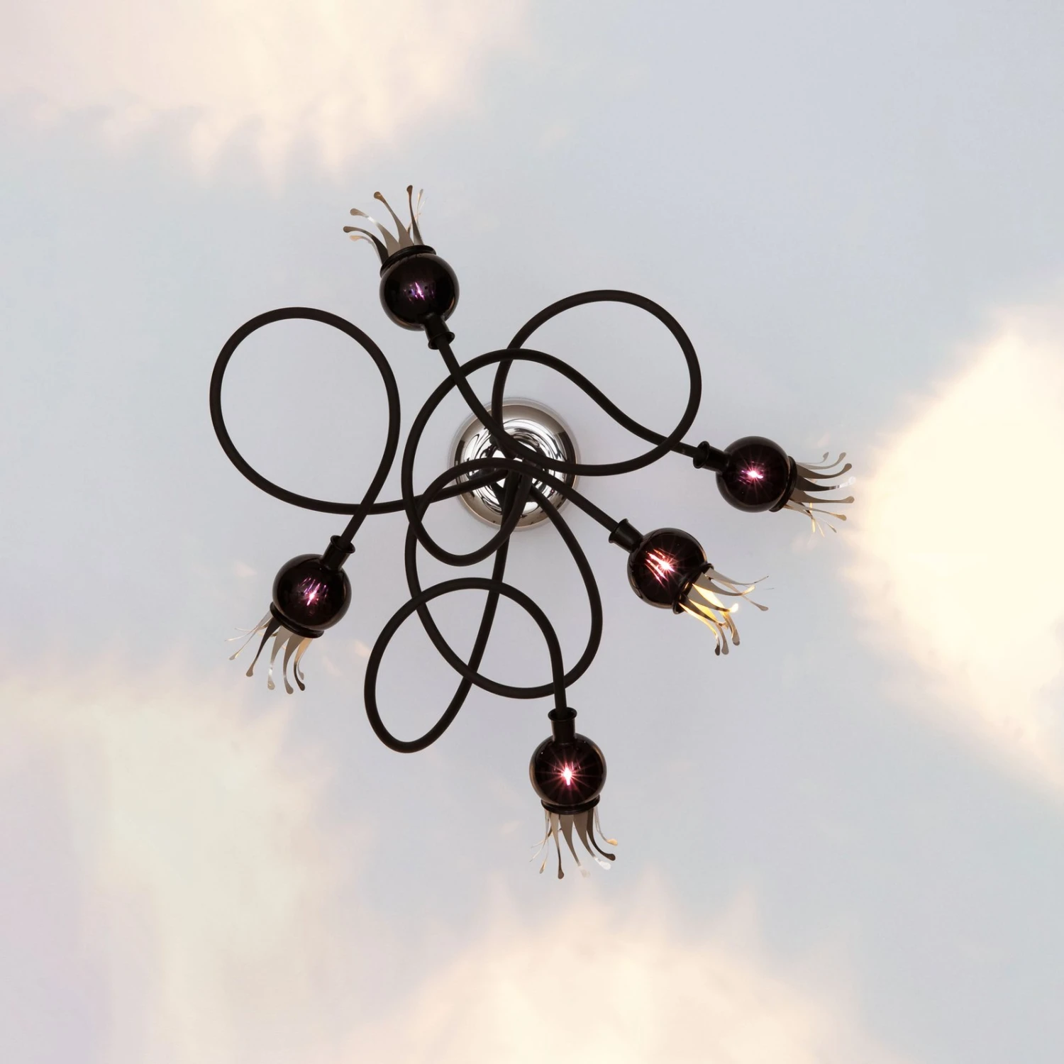 Florale Schönheit modern interpretiert: Deckenleuchte Poppy mit fünf Glasschirmen und flexiblen Armen
