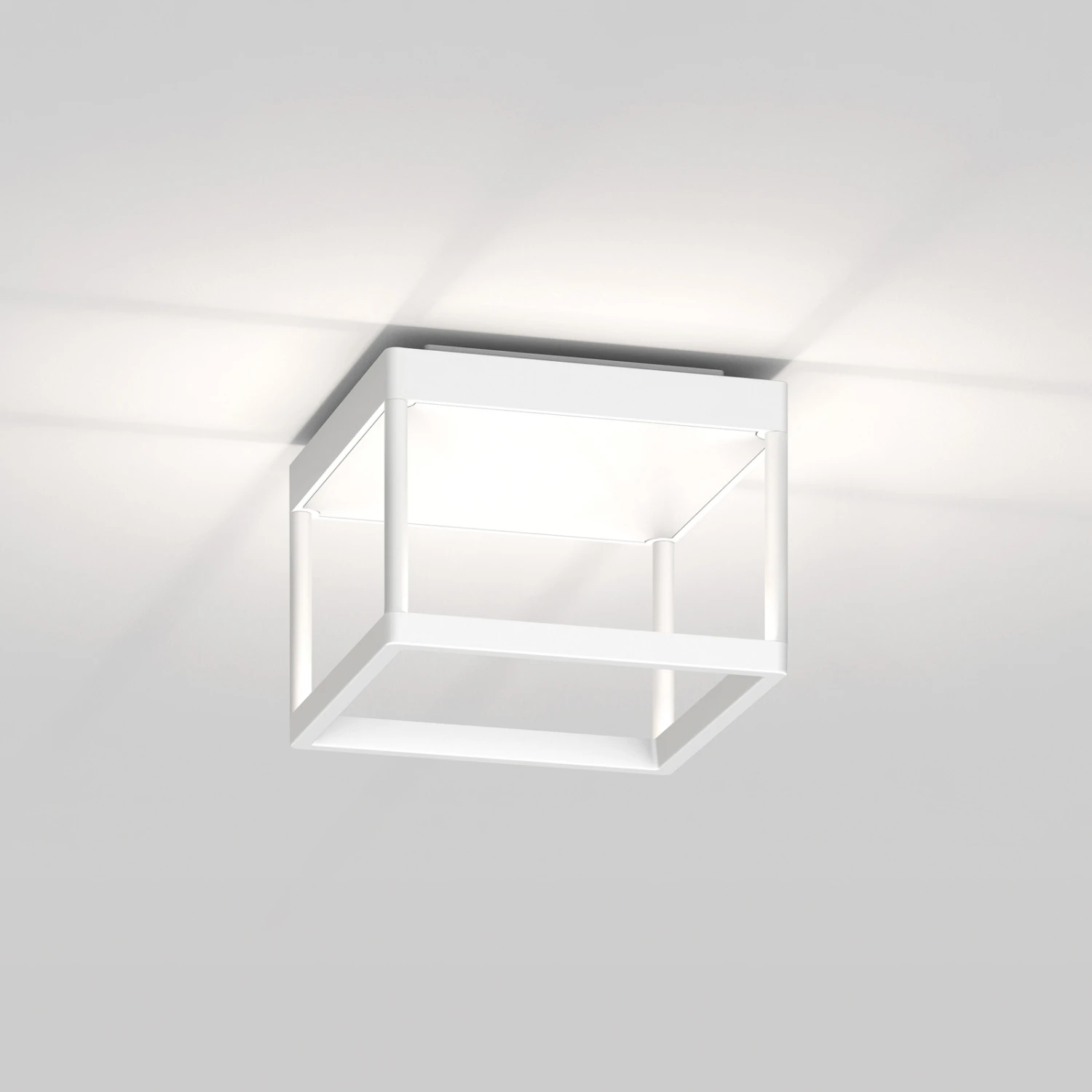 Als offener Quader gestaltete LED-Deckenleuchte Reflex² S, 2.700 K, extern per Triac dimmbar, Grundfläche 20 cm x 20 cm