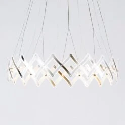Gehalten wird diese eindrucksvolle Pendelleuchte nicht von einem, sondern gleich von 20 Seilen, die zu jeder Spitze der Scherenkonstruktion führen und Zoom jederzeit und verlässlich in waagerechter Position halten. Man kann Zoom schon fast als modernen Kronleuchter bezeichnen, der jedoch keinen besonders prachtvollen Raum nötig hat, sondern gleich hier und jetzt im nächsten Wohnzimmer aufgehängt werden kann, um dort sogleich zum Highlight zu avancieren.